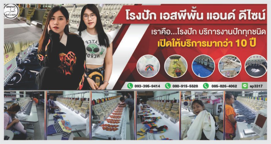 กลับหน้าแรก - โรงปัก เอสพีพั้นแอนด์ดีไซน์ (ซอยข้างโฮมโปรศรีนครินทร์) ถนนศรีนครินทร์ อยู่ฝั่งตรงข้ามโลตัสศรีนครินทร์ ผ่านแยกเทพารักษ์ สะพานลอยแรกเลี้ยวซ้ายเข้ามาประมาณ 50 เมตร เลี้ยวขวามือ เข้ามา 300 เมตร ซ้ายมือ เลขที่ 2122/63 หมู่ 7 ต.เทพารักษ์ อ.เมืองสมุทรปราการ จ.สมุทรปราการ 10270 เราให้บริการ รับปักเสื้อโปโล,รับปักหนัง,รับปักผ้าขนหนู,รับปักกางเกงนักมวย,รับปักหมวก,รับออกแบบ บล็อคลายปัก โดย ช่างบล็อก ที่มีประสบการณ์ ติดต่อ คุณแอน 085-826-4062 ,คุณสุรัตน์ 083-917-9237 Line ID : 0839179237 , ช่างพจน์ 093-395-9414 , Line : sp3317