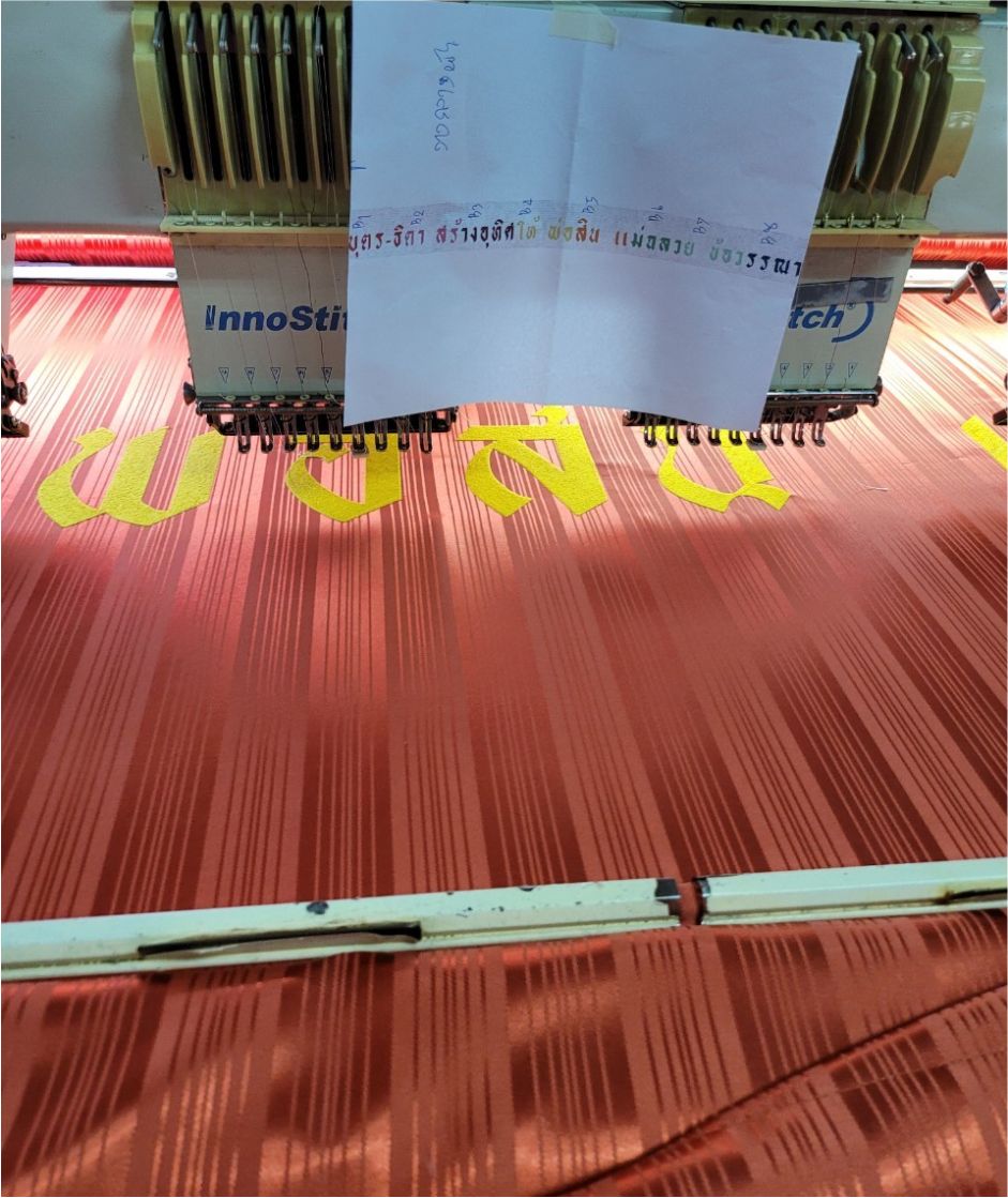 โรงปักเอสพีพั้นแอนด์ดีไซน์ ปักผ้าหลา ปักผ้าหลาขนาดใหญ่ ปักต่อเนื่อง ปักผ้าทั้งม้วน